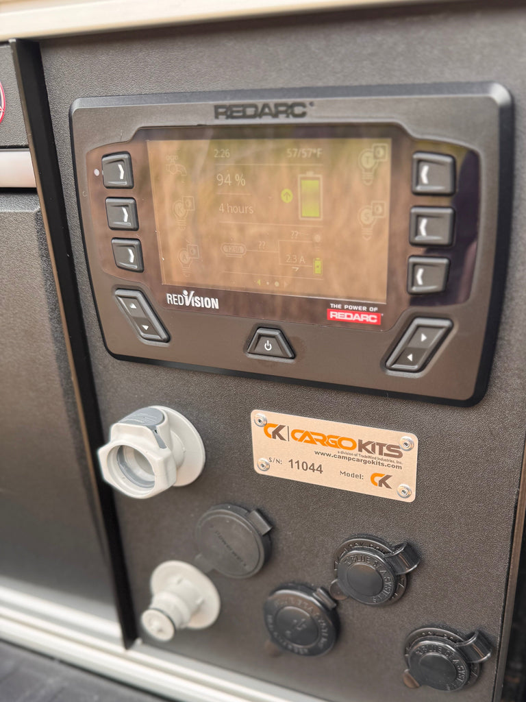 - All battery systems include: RedArc BCDC Alpha 25 Charger / 12 Circuit Fuse Panel / (2) 12V Plugs / (1) 4.8Amp Twin USB A Outlet / (1) Twin USB C 90W / A choice of two LiFePO4 Batteries - Redarc Alpha 150 Battery 150 Amp Hour Capacity, Self Heating, Bluetooth App - Renogy Pro 100 Amp Hour Capacity, Self Heating, Bluetooth App