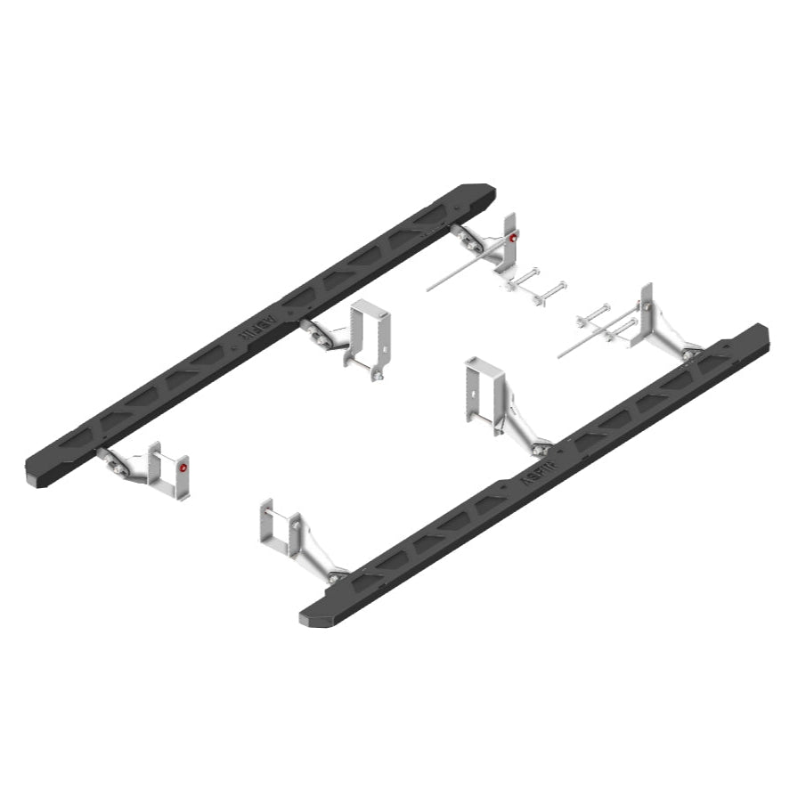 The Toyota Hilux Rock Sliders are heavy-duty steel guards engineered for off-road strength and everyday practicality. Reinforced with a solid steel bar, they protect rocker panels and doors while serving as durable side steps with improved grip. Built for long-lasting performance, they mount directly to OEM chassis points with no drilling required.