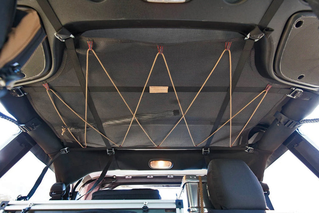 Thankfully, you can leave the parachute pants out of your JKU attic if you choose (but really, we're not here to judge). You can store things jackets, rain gear, tents, blankets, sleeping bags, you know — lightweight stuff — from this decade. Stuff that wouldn't make your kids try to crawl under the seat if you had them out in public. Our attic is made of mil-spec mesh and is built for the 2012 and newer Jeep JKU.