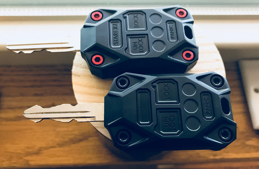 The Injection Fob is a two piece plastic case that replaces the factory case that comes with the vehicle. For Jeep Wrangler JKs 2007-2018 and other Chrysler applications using the same factory fob. Compatible with and without factory remote start (2 different buttons are included). Injection molded of high strength and impact resistant ABS plastic. Instead of an annular snap fit, this design bolts together with socket head cap screws for a more rugged and straightforward approach. Assembly requires 7/64" allen key (included). Made in USA.