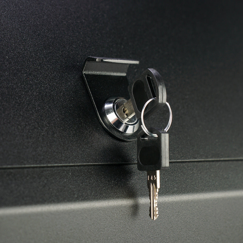 This lockable compartment bolts directly to the back of your Mercedes Sprinter seat riser and gives you an extra spot to stash your stuff. Box and lid are made from 12GA laser cut 6061-T6 aluminum and feature a durable black powder coated finish. All parts are made in house with US sourced materials.