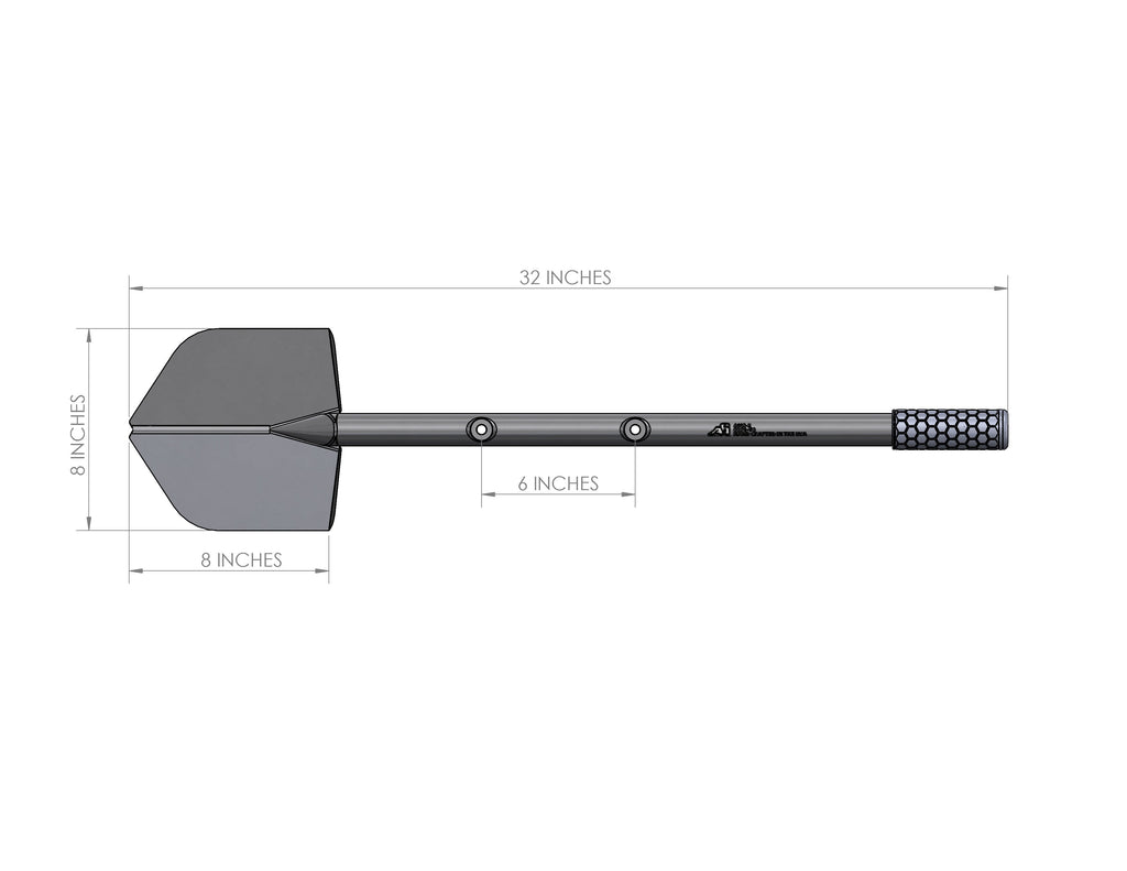 Shovel includes built-in mounting holes (6" apart) to be compatible with Agency 6 Mounting Devices.