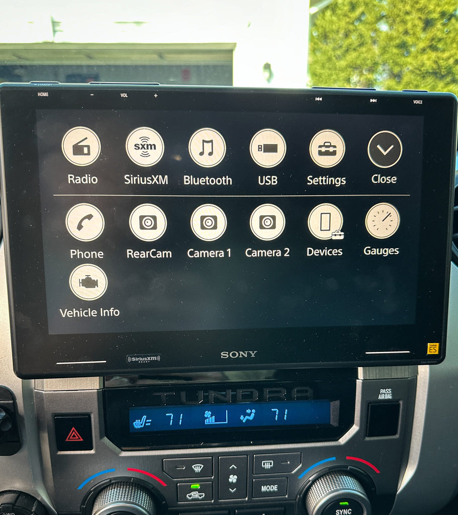 Having a better view out of the front of your Toyota 4Runner, Tacoma or Tundra is a must have in our opinion. Adding a camera couldn't be easier if you have already installed our Sony 9000ES, 8500, 9500ES or Alpine Plug & Play Bundle. This front camera add-on gives you the ability to control the new front camera with the "Camera In 1 or Camera In 2" icon directly on the 9000ES, 8500, 9500ES or Alpine screen.