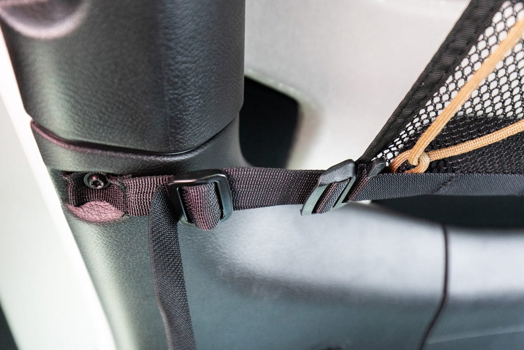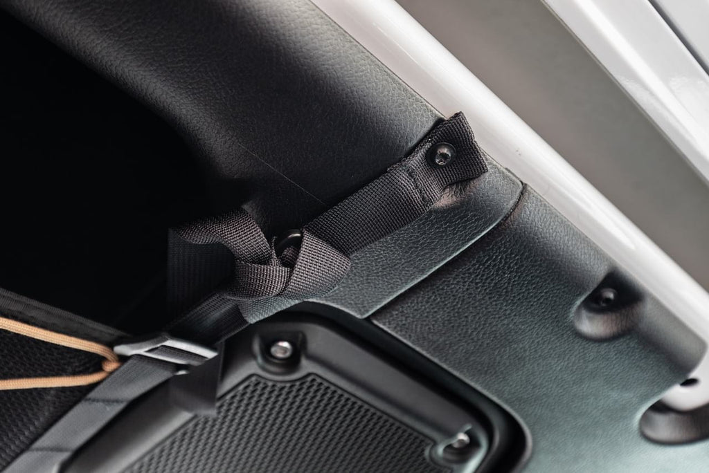 - Screws in with existing bolts on the Rollbar with 1" mil-spec webbing and ITW Fastex hardware