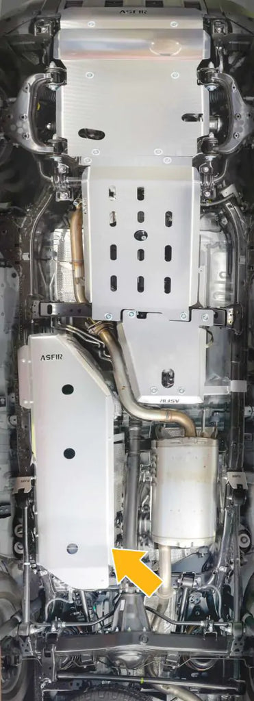 The Toyota Land Cruiser 250 Fuel Tank Skid Plate is constructed from high-quality laser-cut 1/4" (6 mm) aluminum, delivering superior protection with minimal added weight. Purpose-built to defend the fuel tank from rocks, debris, and off-road impacts while maintaining optimal ground clearance. Recommended as part of ASFIR’s complete underbody protection system for the Land Cruiser 250 Hybrid.