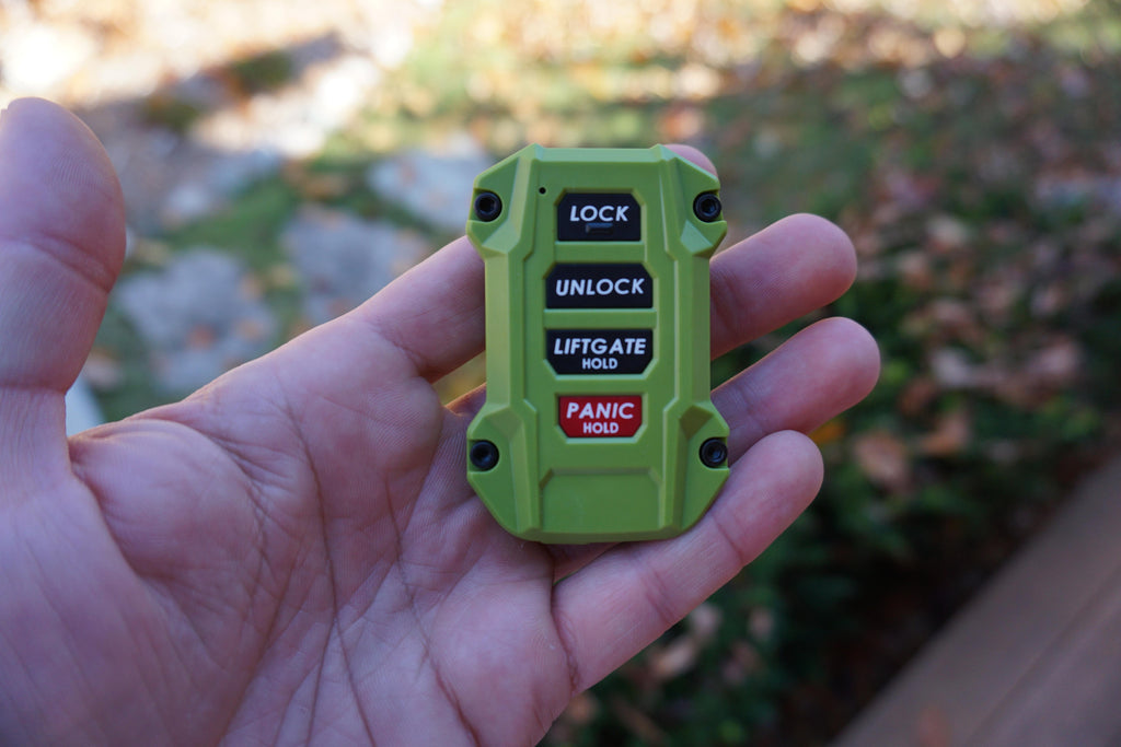 Button sets include both a "Liftgate" and blank button to accommodate both 3 and 4 button versions. Both black and red button sets include a red and black panic button.
