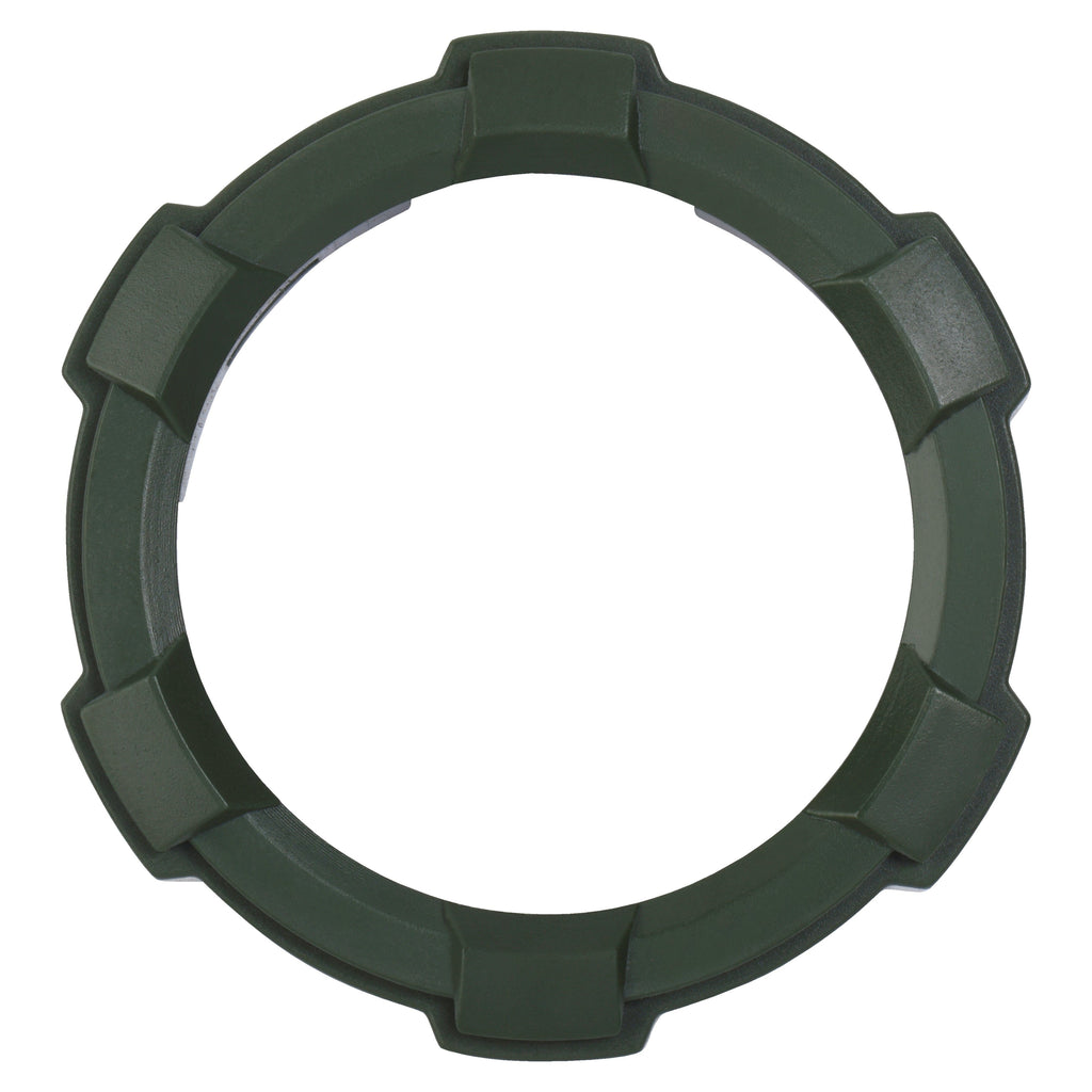 Injection molded of high strength and impact resistant ABS plastic. Install is easy, factory ring is removed with a small screwdriver (not included), the new ring snaps in place like the OEM piece. Made in USA.