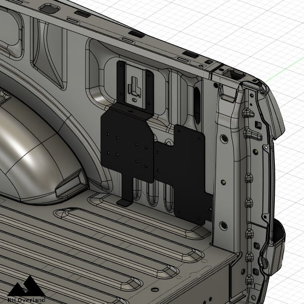 Ford Boxlink compressor mount is designed to work with the factory tie down points. The upper part of the mount is bolted down via the factory T30 Torx screws and there is a lower support leg.