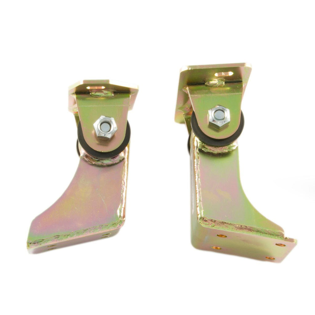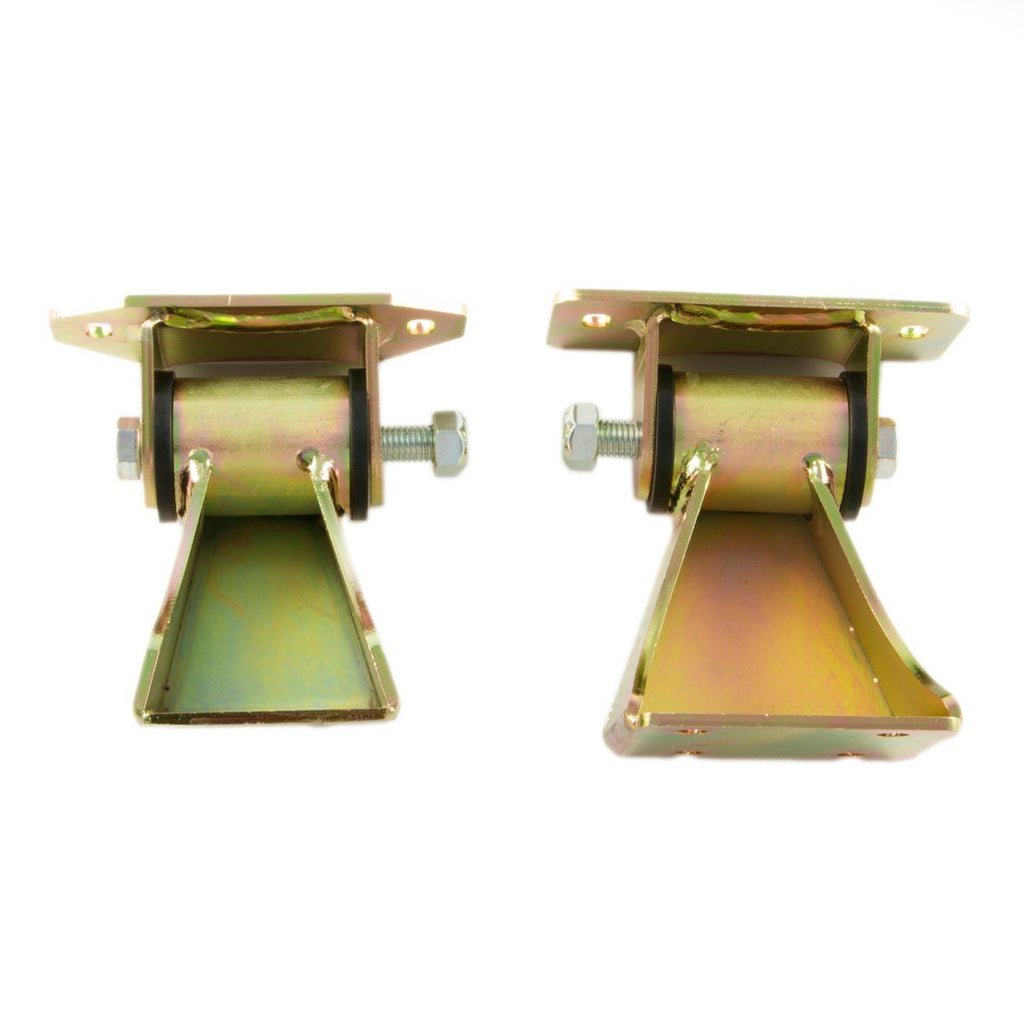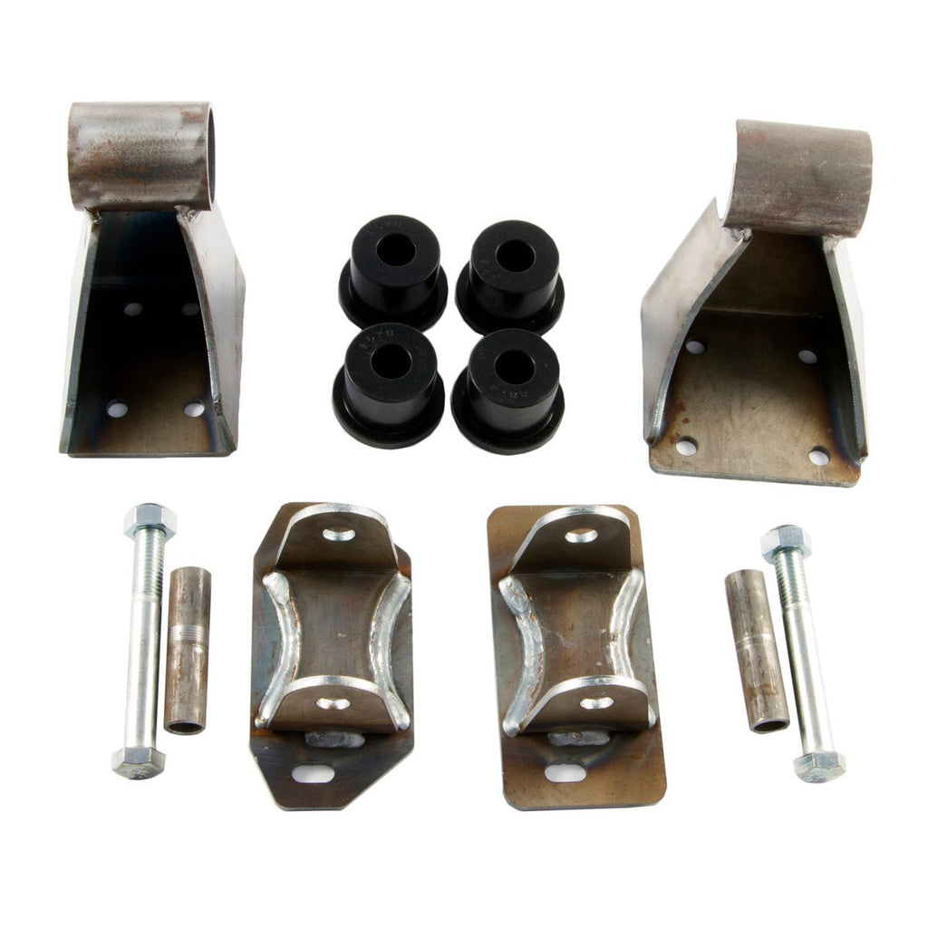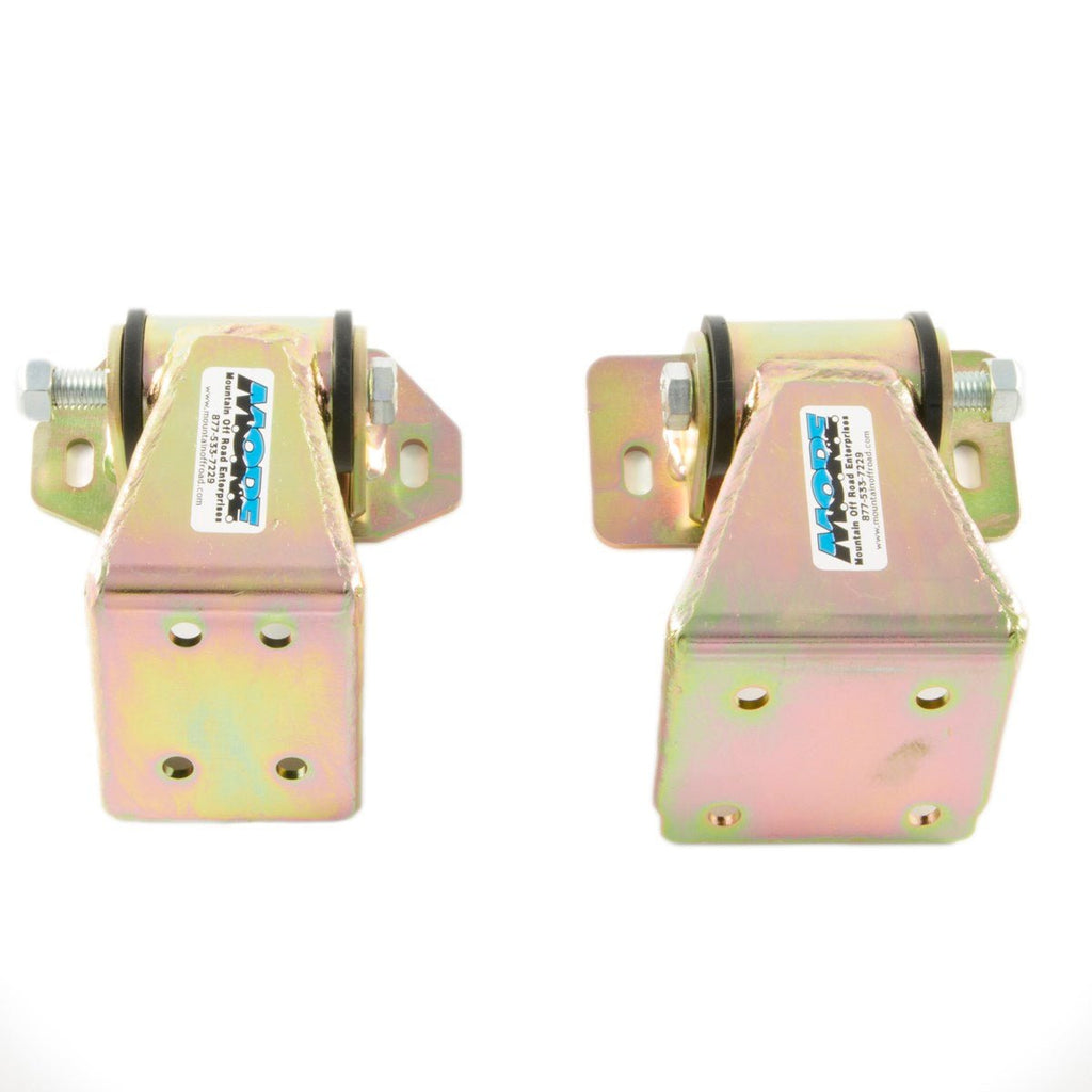 In most applications, our "Bomb Proof" motor mounts do not need modifications. Zinc-plated, this motor mount kit is for those of you who need serious protection from the elements (and they look ultra trick!). Plus, the no-paint version of our motor mount kit is for those of you who want to save some money and paint the mounts yourself. Black polyurethane bushings insulate from steel to steel contact. M.O.R.E. also offers replacement body mount parts.