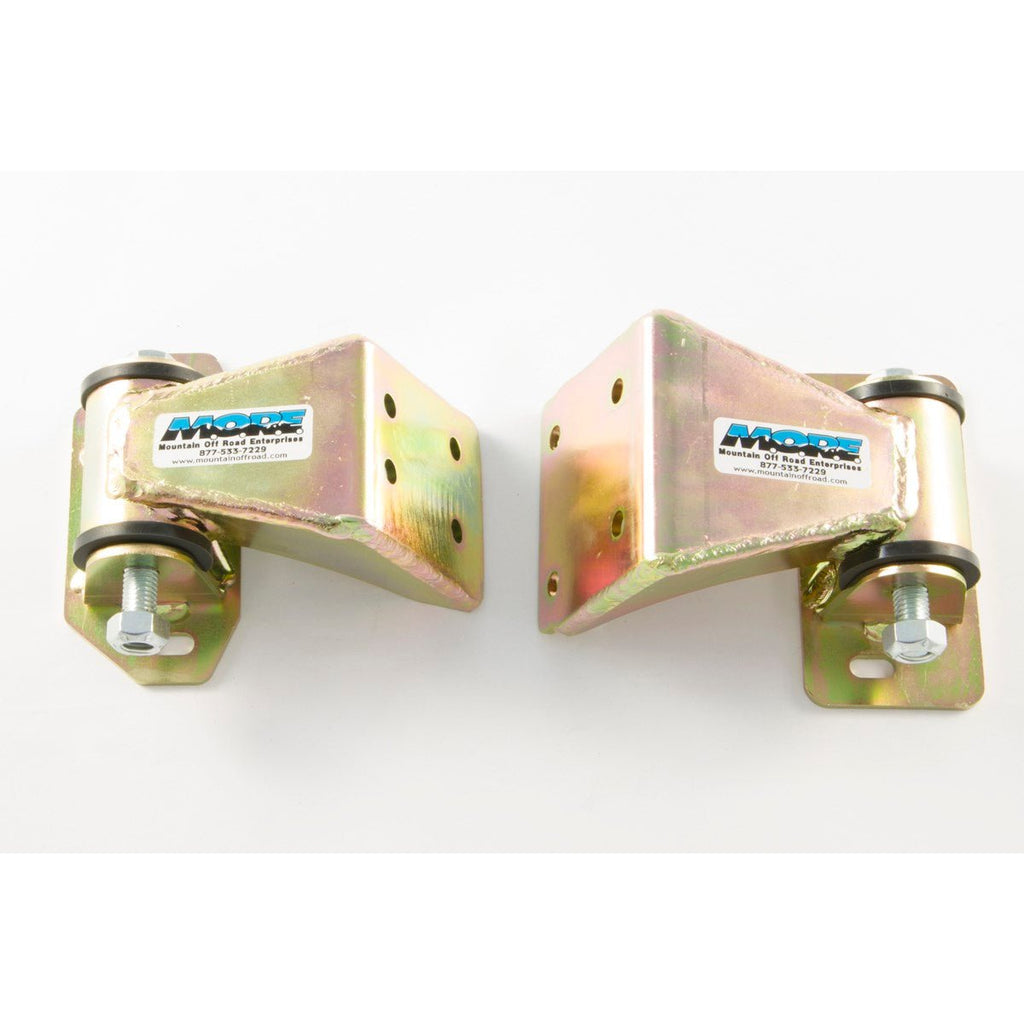 Now that rock crawling has become the favorite past time for Jeepers and we are putting our Jeeps in places that they were never designed to go, the stresses on the stock Jeep motor mounts are tremendous. With deep gearing, big tires, lockers, and mega torque, the stock mounts can be torn apart in no time at all. That is where these "Bomb Proof" motor mount kit products come into play. They bolt into stock holes in the frame and engine (in some applications, drilling and/or welding may be required).