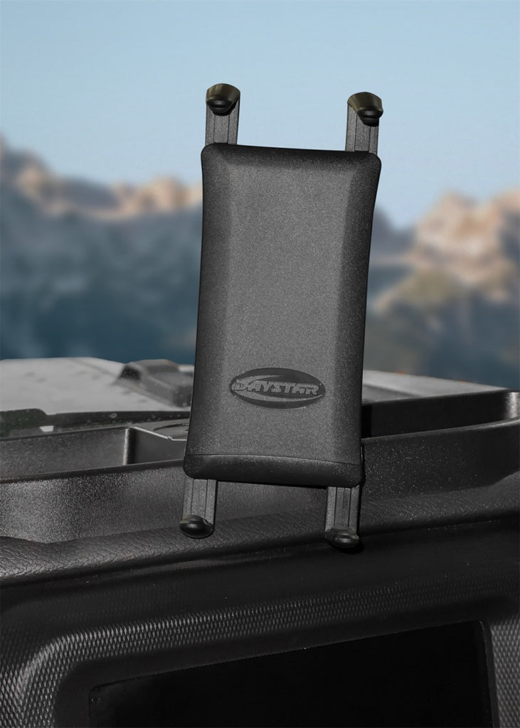 2018-2022 Jeep Wrangler JL Upper Dash Panel with Phone/GPS Cradle and Action Camera mount location. Transform your factory dash into a custom organizational solution for your phone, action camera, and sunglasses. Daystars JL Dash Mount installs in minutes and comes complete with a phone cradle and GoPro mount.