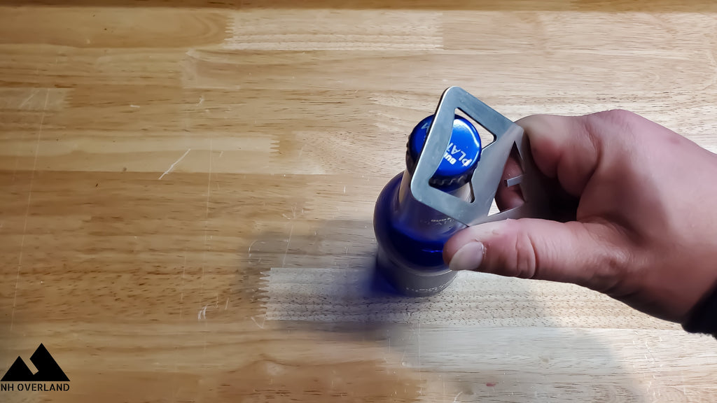 Stainless Steel NH Overland bottle opener with key ring.