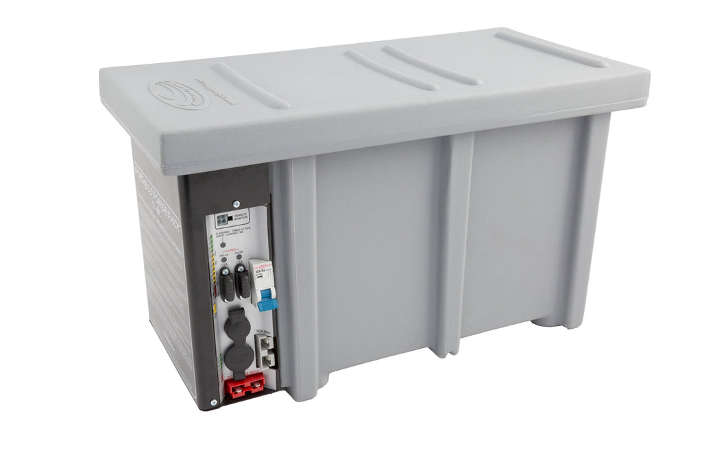 The National Luna Portable Power Pack is a removable, compact battery box with built-in split-charge isolator that can be used as a standby power pack for 12-volt appliances. This pack is ideal for modern vehicles that cannot accommodate a second battery in the engine compartment. It features fused accessory plugs, a polarized high-power plug, and a built-in battery monitor with low-battery and over-charge warnings. The built-in plugs can be used for low-power accessories such as refrigerators, pumps, compressors, lights, or other 12-volt electronic devices. The high-current input-output can be used for higher power requirements, such as invertors or battery chargers. The built-in split-charge isolator is fully automatic and does not require additional hardware in the application vehicle. You do not need to purchase a separate Cable Kit; it is already included.