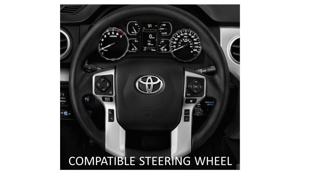 2 piece steering wheel trim. Injection molded of high strength and impact resistant ABS plastic. Easy install, please read instruction document before ordering (see below). Replaces factory trim pieces, not a stick on cover. Compatible with several Toyota steering wheels (see compatibility photo).