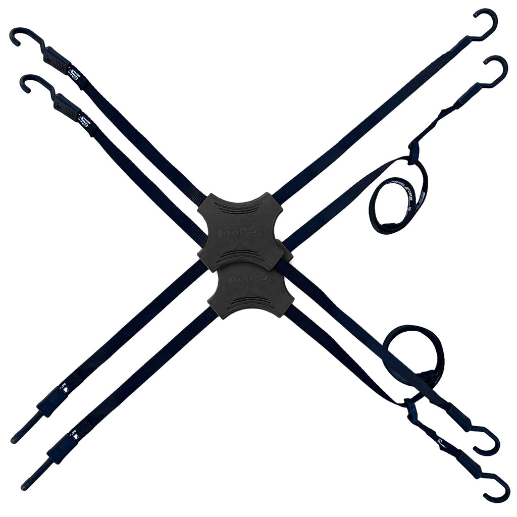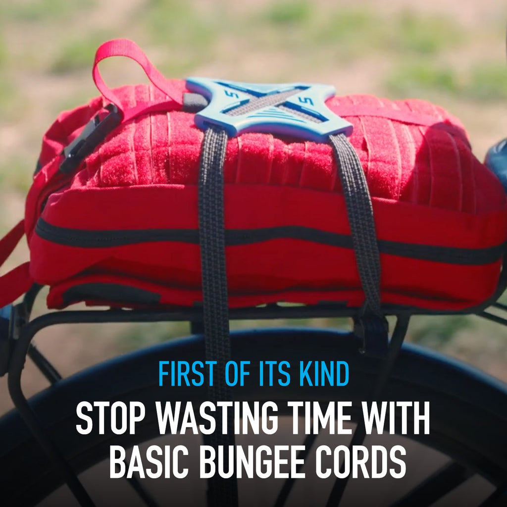 The Tack Strap by STAPLL is the first of its kind - 4-Way Bungee Cord. An innovative & adjustable non-slip rubber grip allows you to control the placement of your bungee cords like never before while focusing a Center of Pressure (CoP Tech) over whatever it is you're strapping down. The rubber pad grips surfaces creating the most secure bungee cord strapping system ever created.